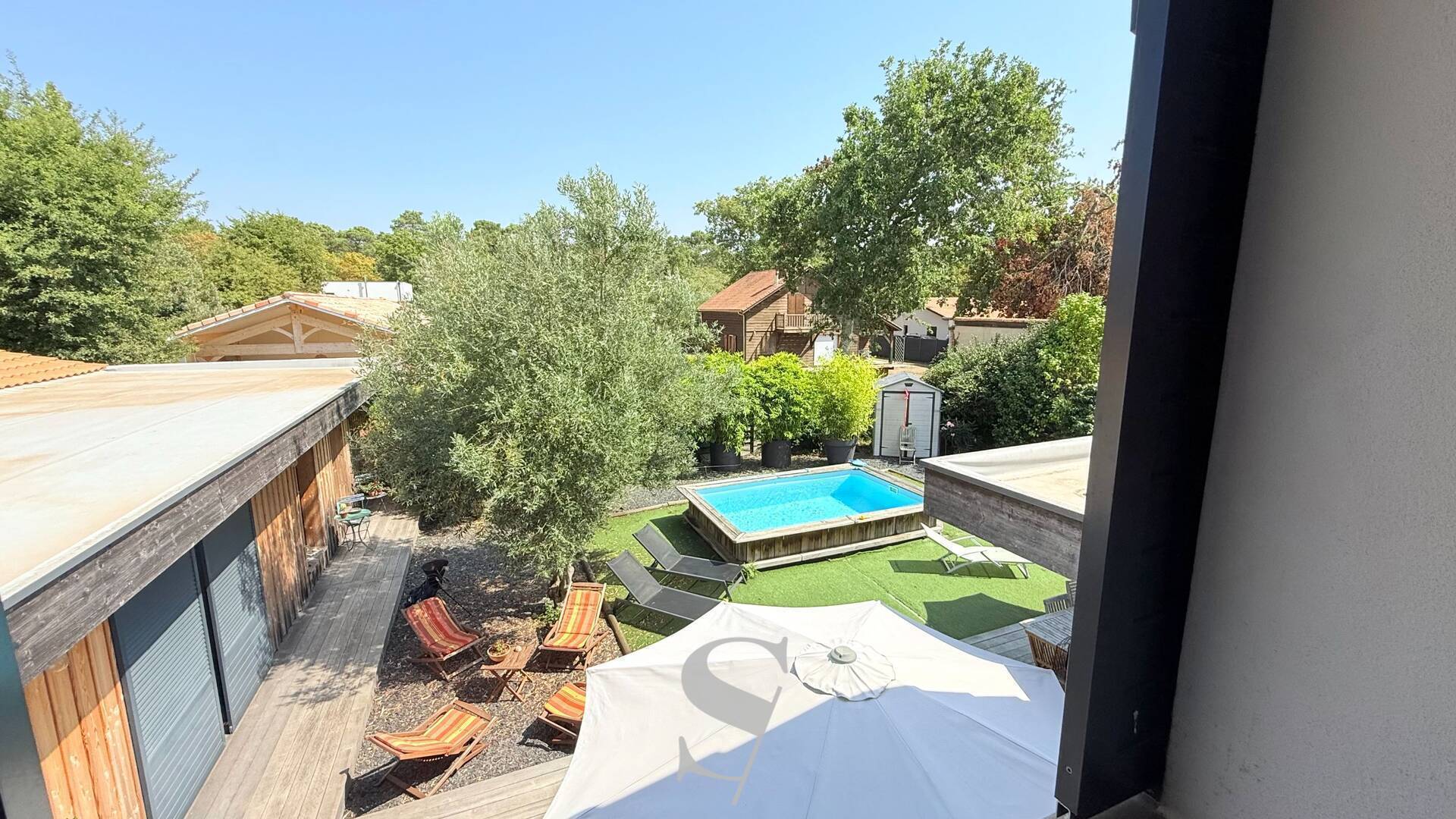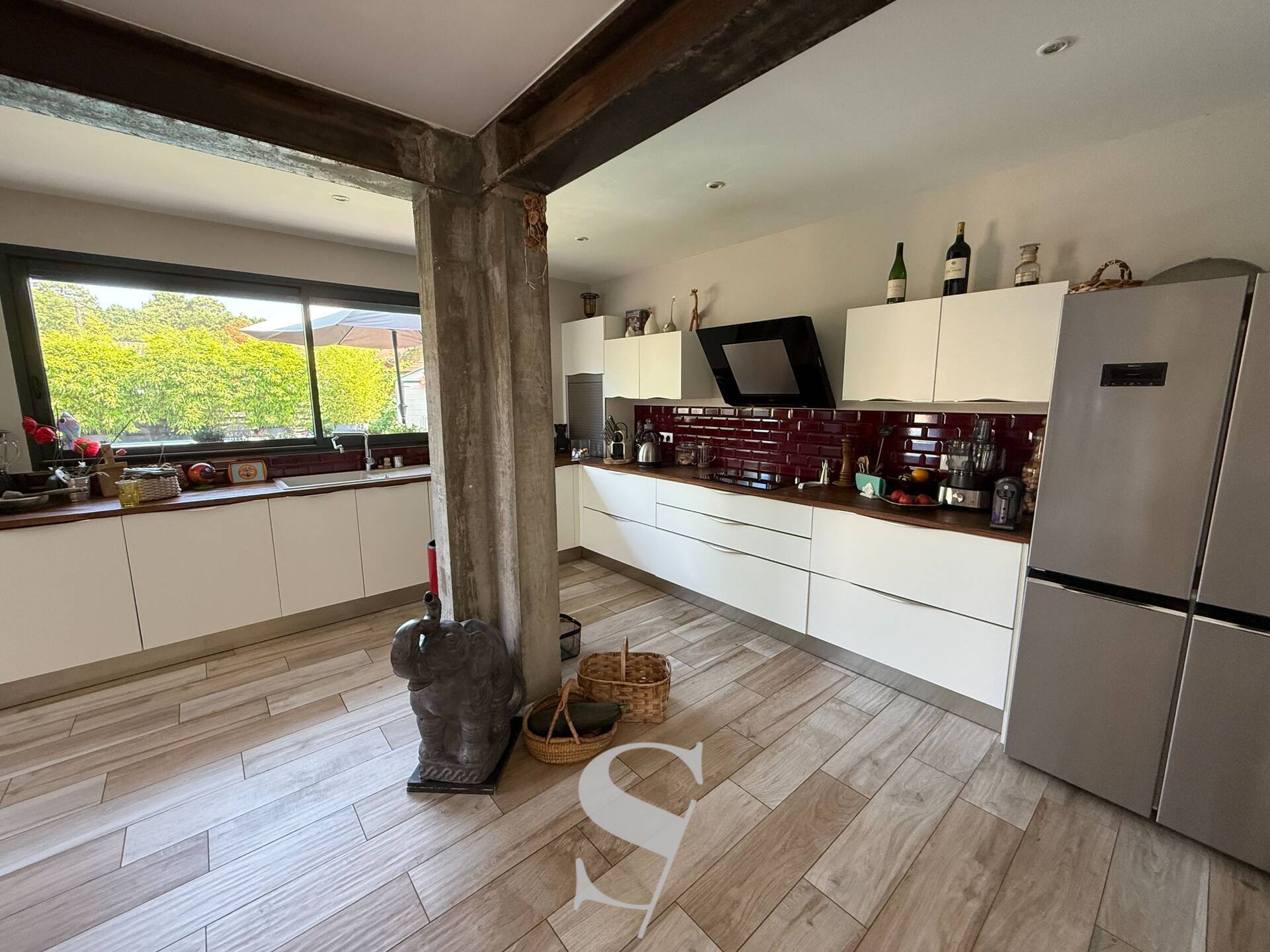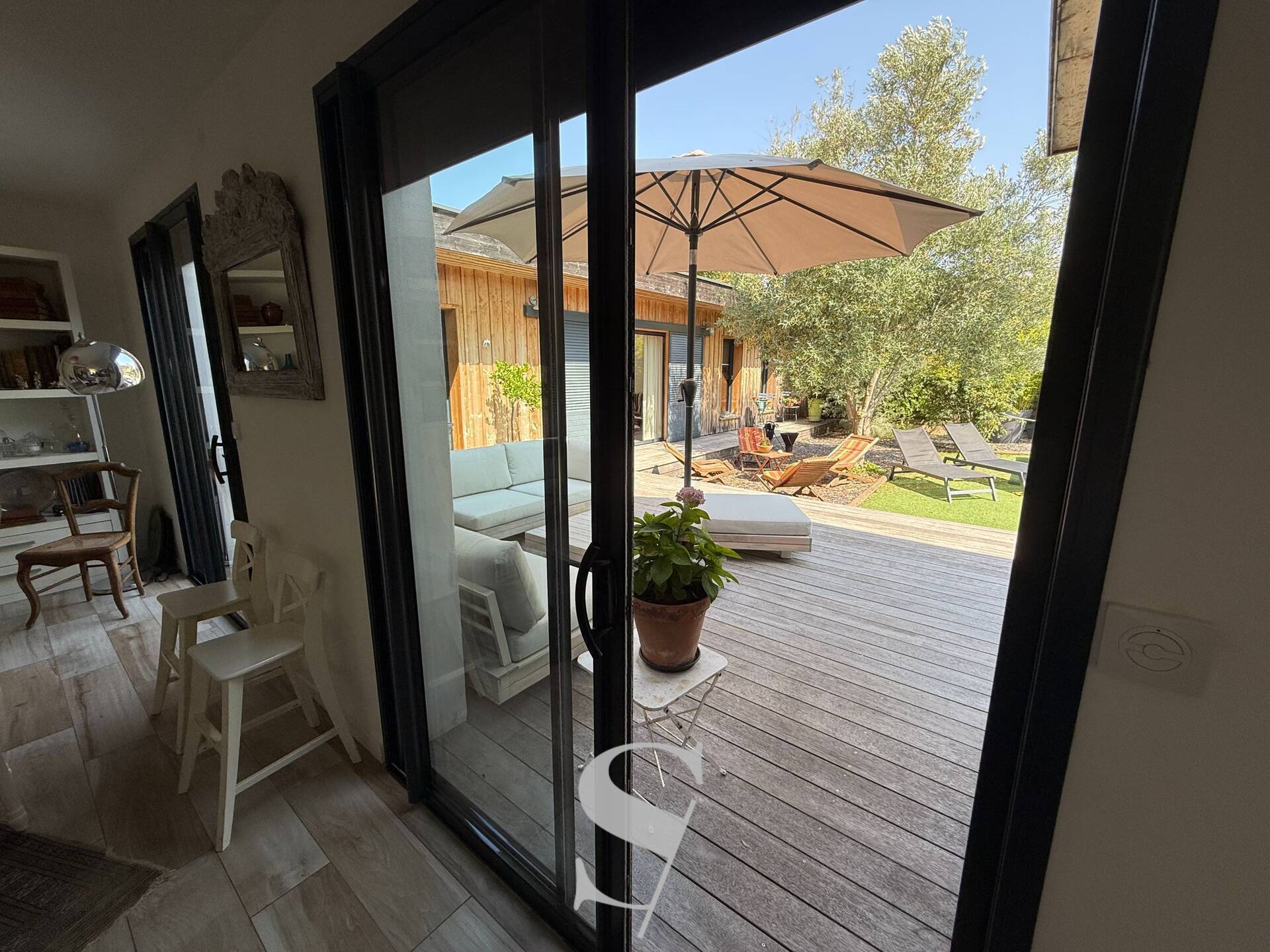 Agréable et lumineuse maison à l'architecture moderne d'une surface de 168m2 habitables (174m2 Utiles) composée d'un bel espace à vivre ouvert sur la terrasse et le jardin exposés Est/Sud et Ouest.