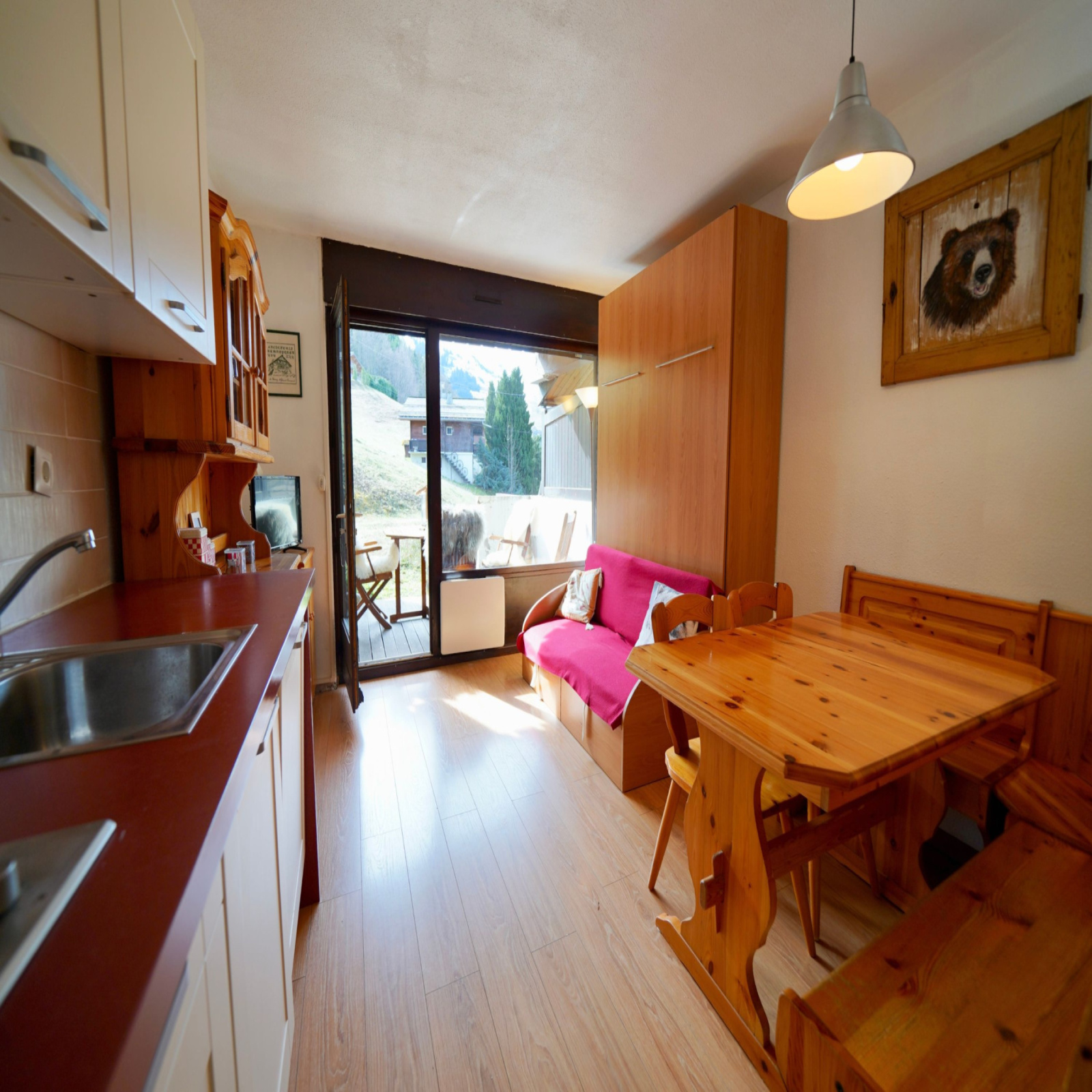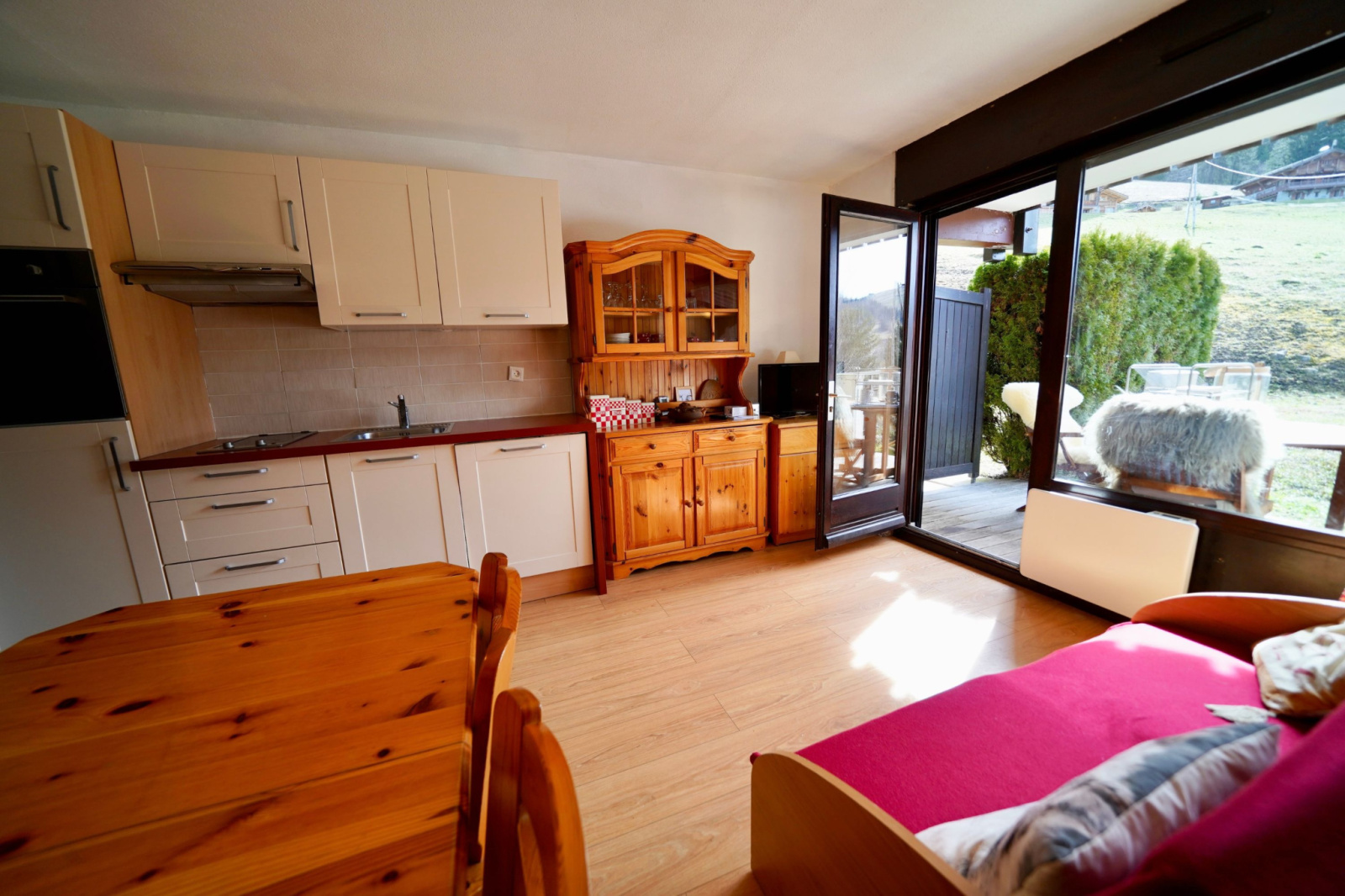 LA CLUSAZ - En exclusivité - Agréable STUDIO CABINE d'une surface de 27 M2, entièrement rénové, Situé à 2,4 Km du centre de la Clusaz, sur la Route du Col des Aravis, avec en panorama le massif de l'Etale, cet appartement bénéficie d'une belle situation au sein d'une petite copropriété. Il est composé d'un bel espace de vie donnant directement sur la terrasse exposée plein Sud, une petite chambre, une salle de douche, un toilette et dispose de 5 couchages. En annexes : une cave et un casier à skis. Garage possible en sus. Faibles charges de copropriété. Ravalement de façades voté et payé. Travaux en cours. Un environnement calme, les navettes à 100 mètres de l'immeuble et retour à ski par la piste du Crêt du Merle.