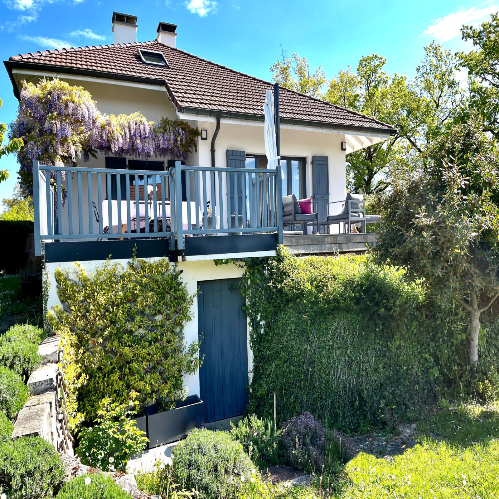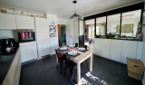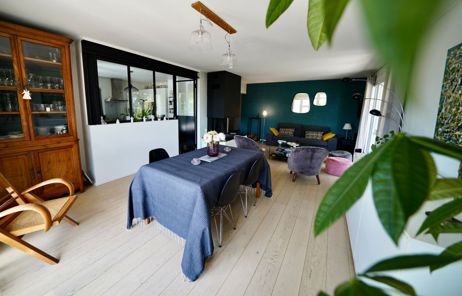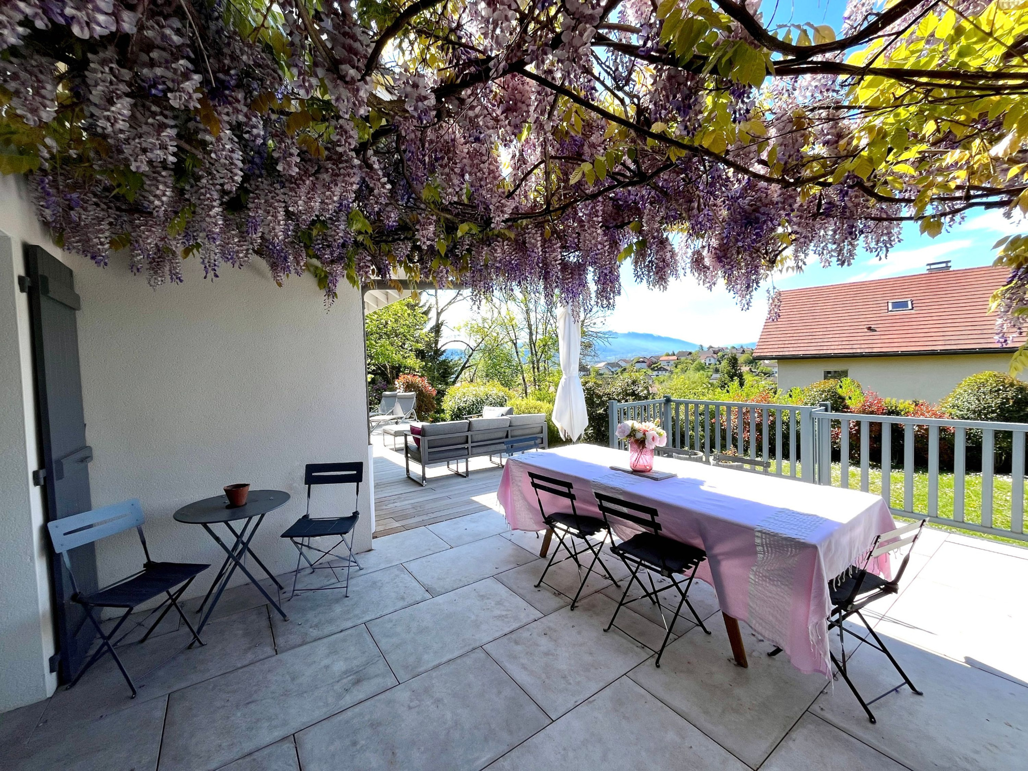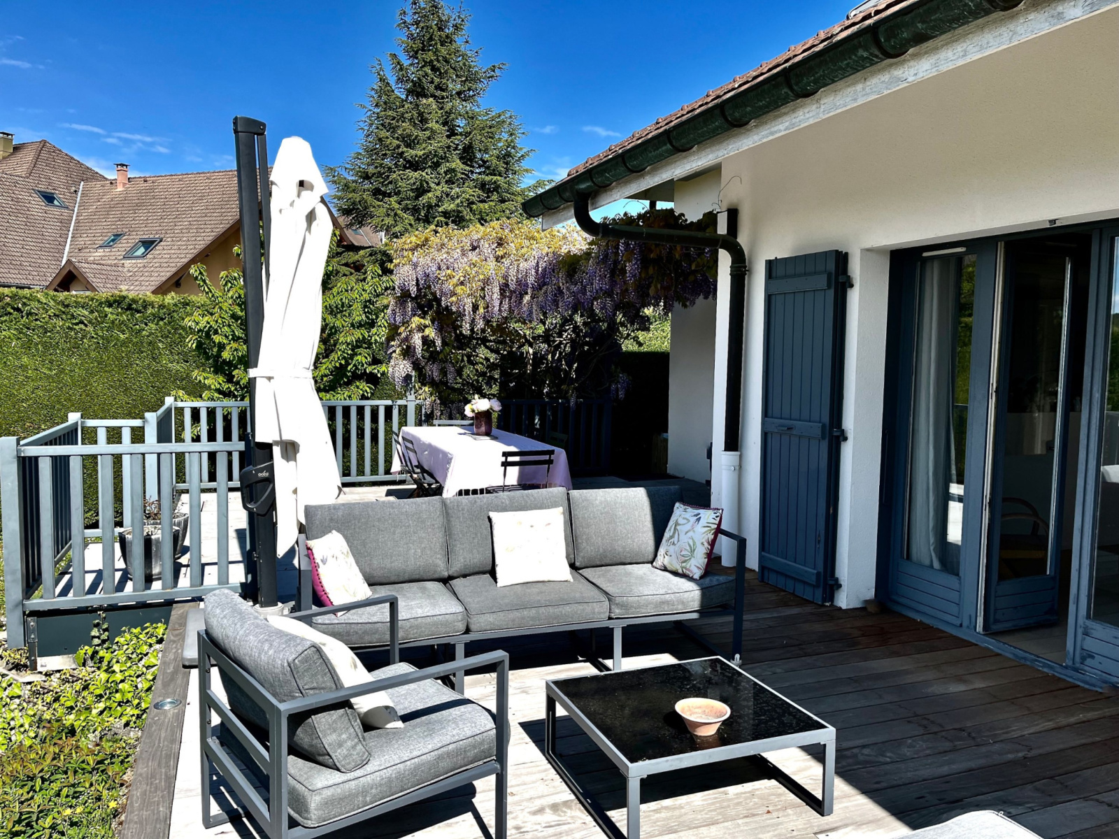 ANNECY - Idéalement située dans le joli village de Poisy, cette maison familiale édifiée sur un terrain magnifiquement arboré de 1000 m2 a été entièrement rénovée avec des matériaux actuels en 2018. On aime : Ses 166 m2 habitables Ses 5 chambres dont une de 20,5 m2 Son agencement avec 2 chambres au rdc permettant de ne pas utiliser l'étage si besoin Ses deux salles de bain et sa salle de douche Sa cuisine dînatoire séparée de l'espace de vie par une verrière Sa cheminée à double foyer polyflam Sa luminosité Ses grandes terrasses et son jardin piscinable Son sous-sol de 125 m2, avec un garage double de 47 m2, une buanderie, une grande cave, un cellier, une pièce de jardin, un wc et une salle d'eau. Sa situation offre un réel confort de vie : 10 mn du centre d'Annecy,10 mn à pied du centre de Poisy, à proximité immédiate d'un arrêt de bus (ligne 1), d'une école primaire, de la crèche et du collège. Sur l'axe des frontaliers.