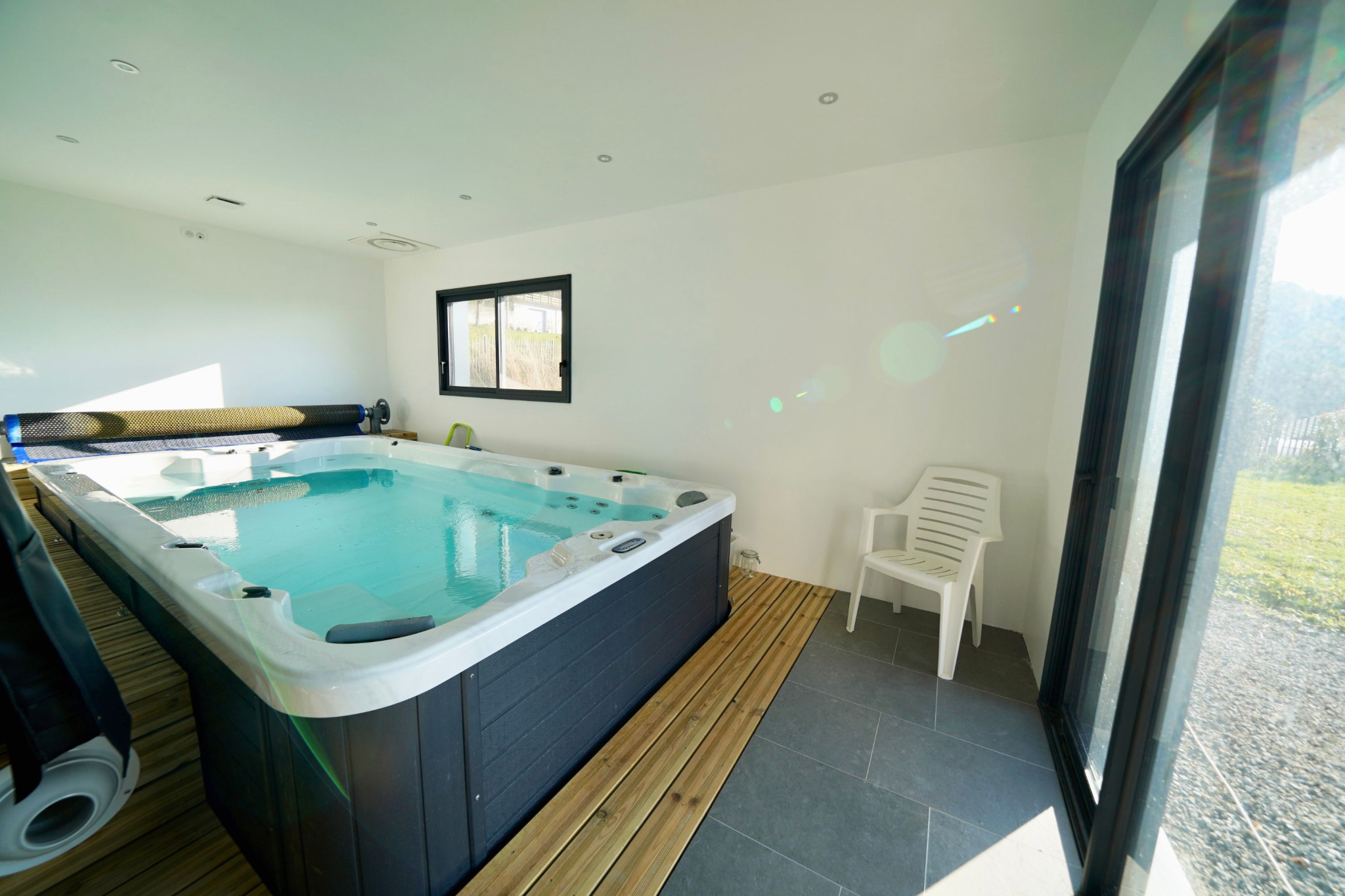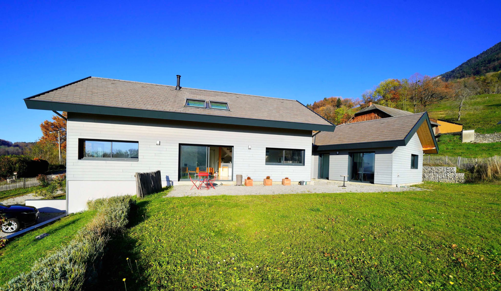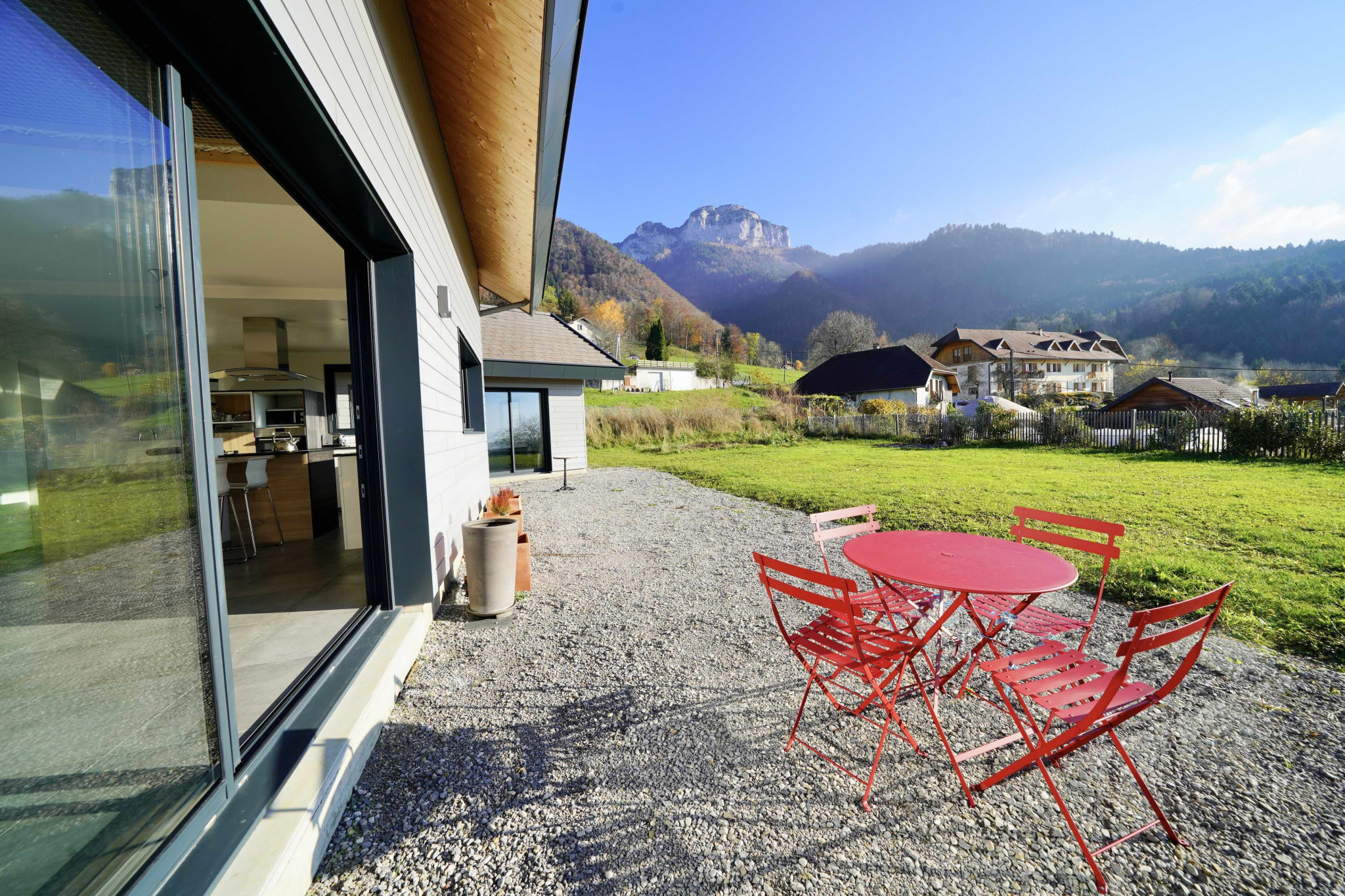 VILLAZ - A 10 mn d'Annecy - Une superbe vue et une exposition optimum à seulement 2,5 km du centre du village, Un bel emplacement pour cette maison ossature bois édifiée en 2016 sur un terrain plat de 1 422 M2. Ses atouts : Un sous-sol de 104 M2 Un agencement habitable de 239 M2 sur deux niveaux : Une pièce de vie lumineuse de 56 M2 à la vue dégagée sur les montagnes, 5 chambres, 3 sdb, 3 wc, un bel espace lecture / TV ouvert sur le salon. Un studio et un SPA de nage donnant sur le jardin. Le calme et la nature pour cadre de vie à seulement 3 mn en voiture de l'école, la garderie, les commerces...