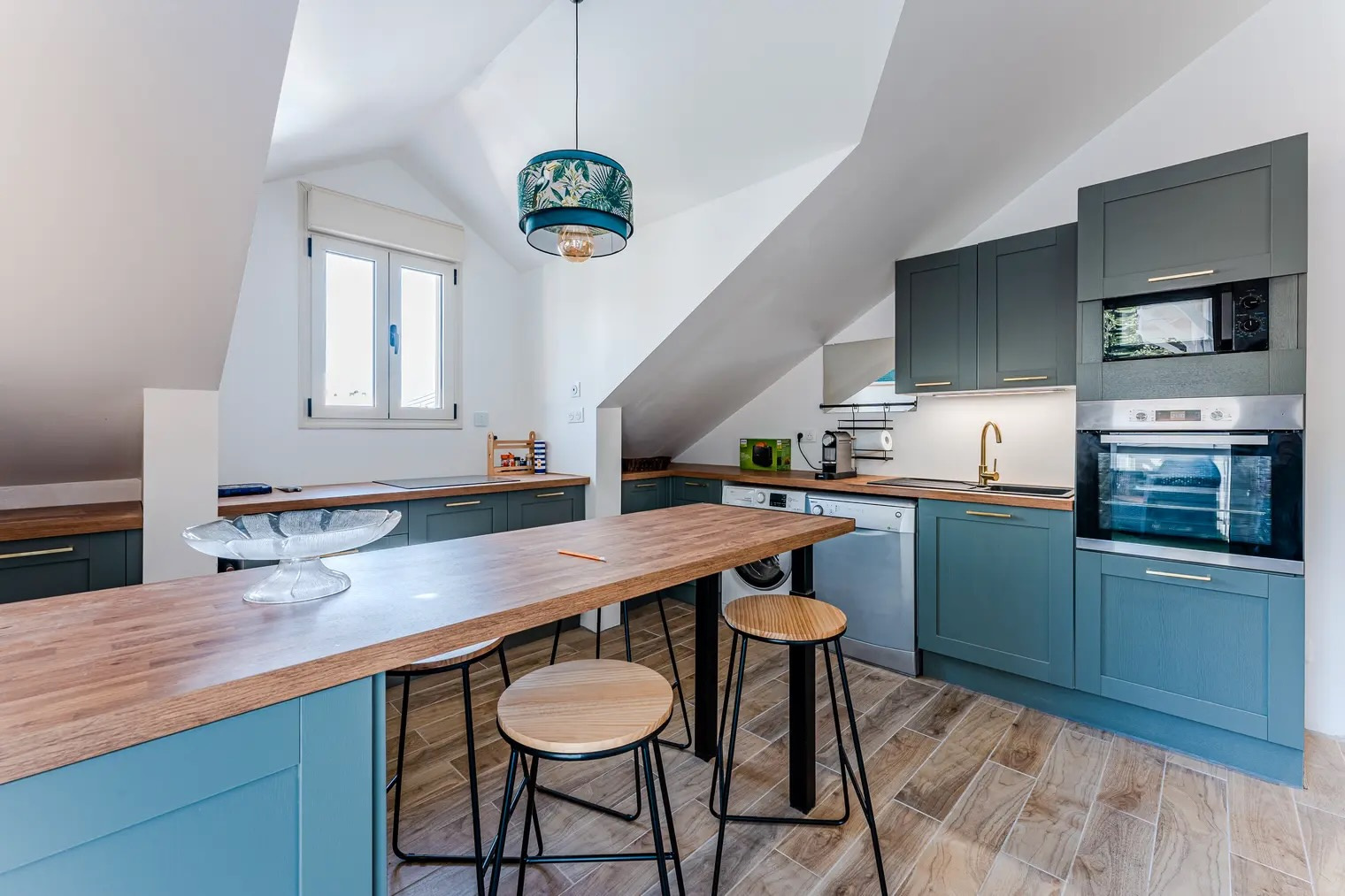 Situé au deuxième et dernier étage, ce bien d’exception a été entièrement rénové par un architecte renommé et séduit immédiatement par ses volumes, sa luminosité et le charme de ses poutres d’origine.