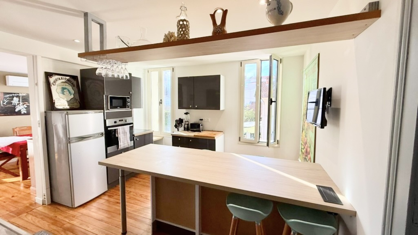 Entièrement rénové il y a seulement deux ans, ce bien allie élégance, confort et fonctionnalité. L’appartement au 1er étage se compose d’un séjour lumineux, ouvrant sur une agréable terrasse, d’un espace salle à manger convivial, de trois chambres, dont une suite parentale avec salle d’eau et WC privatifs. Une seconde salle d’eau avec WC complète l’ensemble.