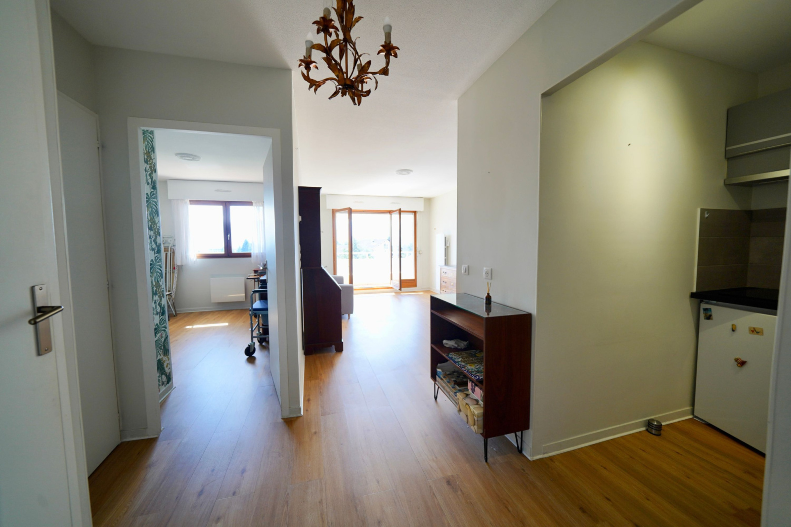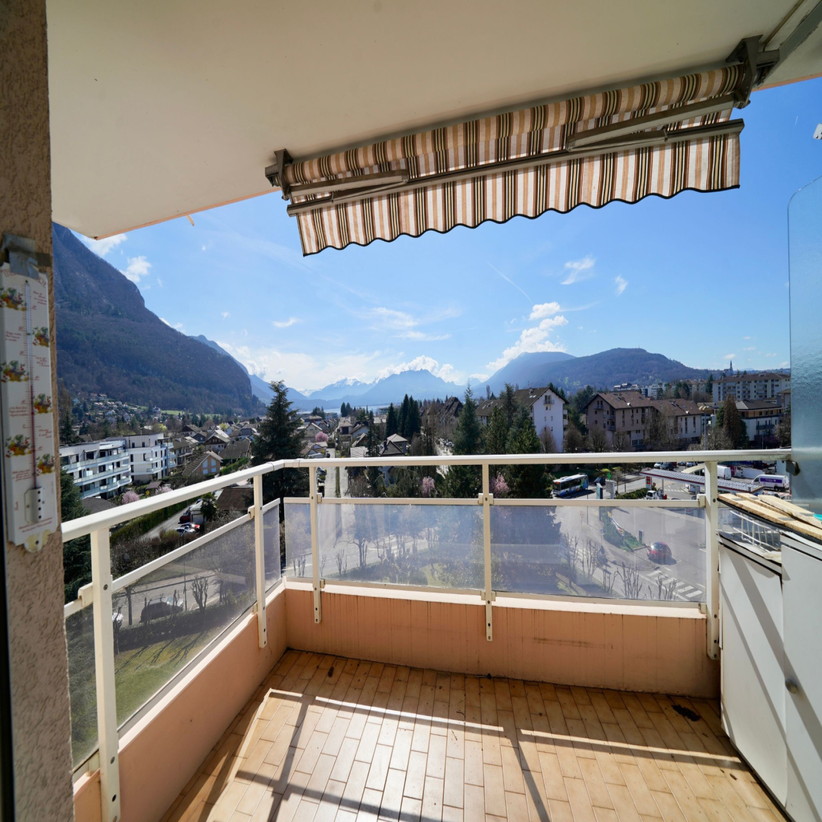 ANNECY LE VIEUX - A proximité du lac et de toutes les commodités, En exclusivité au sein de la Résidence Les Jardins d'Arcadie, au 5ème étage sur 6 avec ascenseur, cet appartement 2 pièces d'une surface de 45 M2 habitables, a fait l'objet d'une rénovation complète. Il est composé d'un salon/séjour ayant directement accès sur la terrasse, d'une chambre avec placard, d'un coin cuisine, d'une salle de douche entièrement équipée et d'un toilette séparé. Exposé plein Sud avec une superbe vue lac et montagnes. En annexes, une cave et un parking privatif en extérieur.
