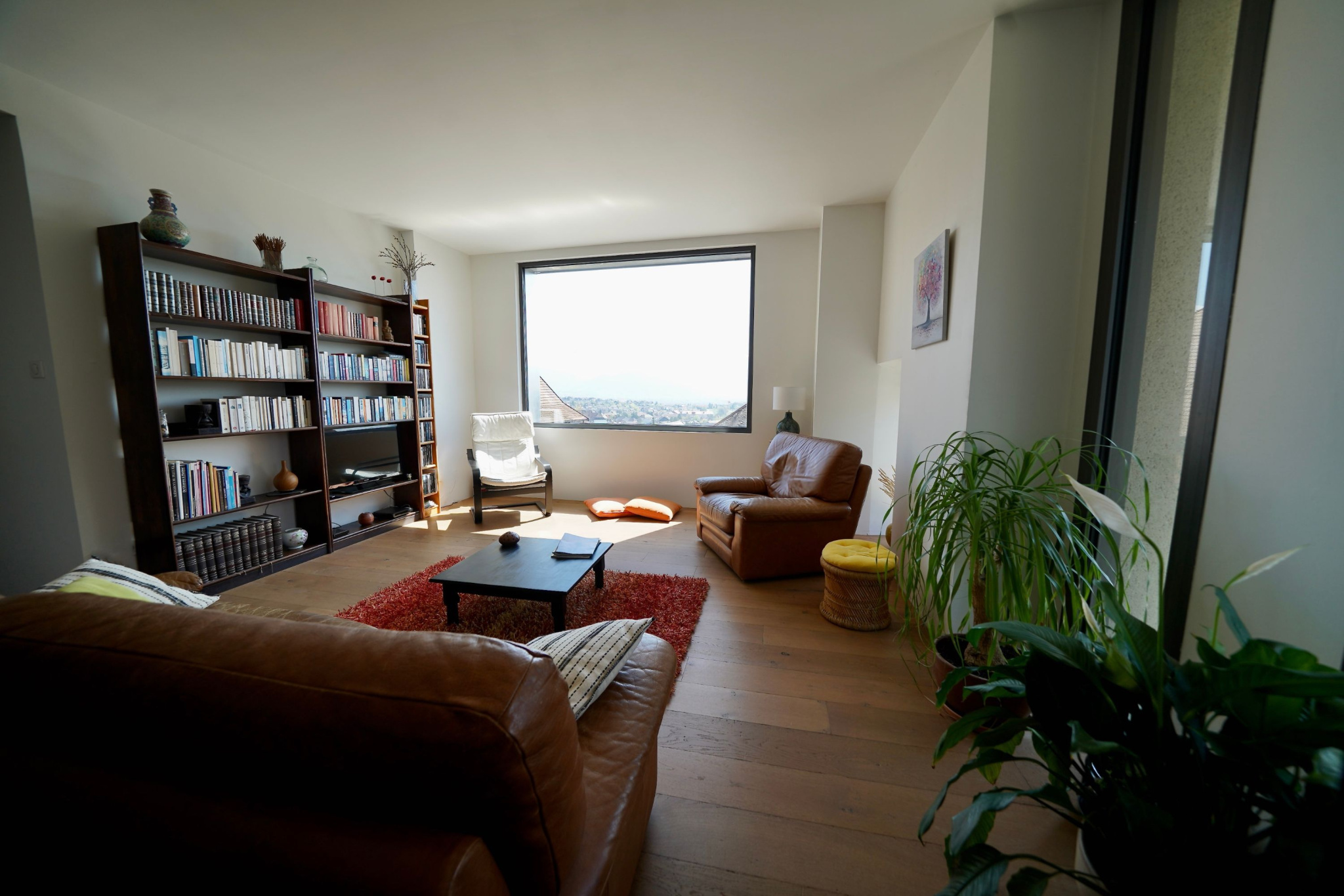 POISY-T4 duplex en rez de jardin d'une magnifique ferme rénovée. A deux pas du centre de Poisy et proche de toutes les commodités. Cet appartement de 114 m2 habitables saura séduire les amoureux de ce charmant petit village très actif et ceux souhaitant profiter d'un véritable extérieur ( 44 m2 de jardin) . Une qualité de vie appréciable ! Copropriété composée de seulement deux lots, au calme avec une vue incroyable sur Annecy, les montagnes et un aperçu du lac. Au niveau du jardin Une entrée, un espace chambre , un espace bureau, une salle de douche, une lingerie Au niveau 1 Une belle pièce de vie avec cuisine ouverte, une chambre avec sdd attenante Un garage de 28 m2 et une place de parking extérieur 15 mn de l'hypercentre d'Annecy 10 mn accès autoroute 35 mn de l'aéroport de Genève